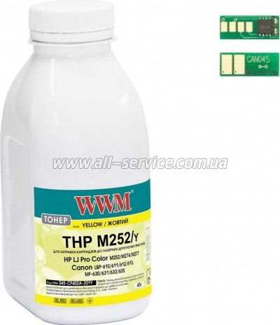 Тонер + чип WWM HP LJ Pro M252/ Canon 045 бутль 45г Yellow (045-CF402A-201Y)