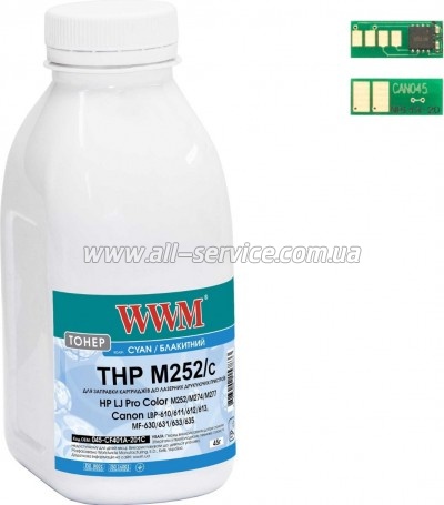 Тонер + чип WWM HP LJ Pro M252/ Canon 045 бутль 45г Cyan (045-CF401A-201C)