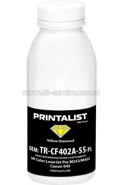 Тонер PRINTALIST HP CLJ Pro M252/ M452/ Canon 045 бутль 50г Yellow (TR-CF402A-55-PL)