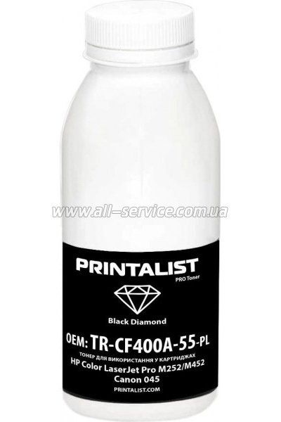 Тонер PRINTALIST HP CLJ Pro M252/ M452/ Canon 045 бутль 60г Black (TR-CF400A-55-PL)