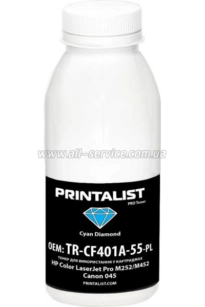 Тонер PRINTALIST HP CLJ Pro M252/ M452/ Canon 045 бутль 50г Cyan (TR-CF401A-55-PL)