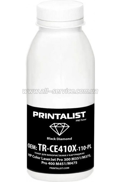 Тонер PRINTALIST HP CLJ Pro 300 M351/ M375/ Pro 400 M451/ M475 бутль 110г Black (TR-CE410X-110-PL)