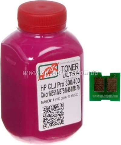 Тонер + чип АНК HP CLJ Pro 300/ 400/ M475 бутль 100г Magenta (1505163)