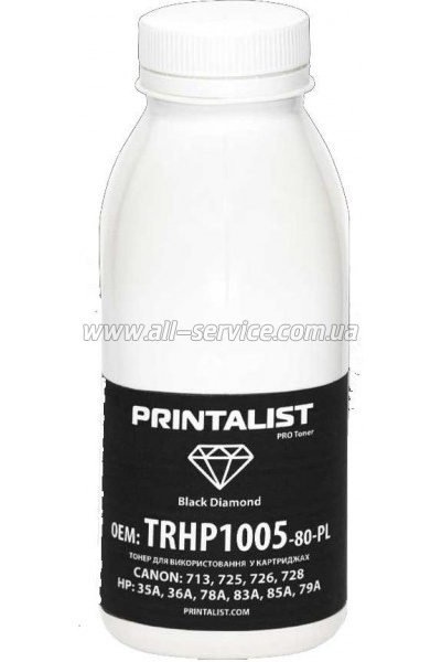 Тонер PRINTALIST HP LJ P1005/ 1006/ 1505 бутль 80г (TRHP1005-80-PL)