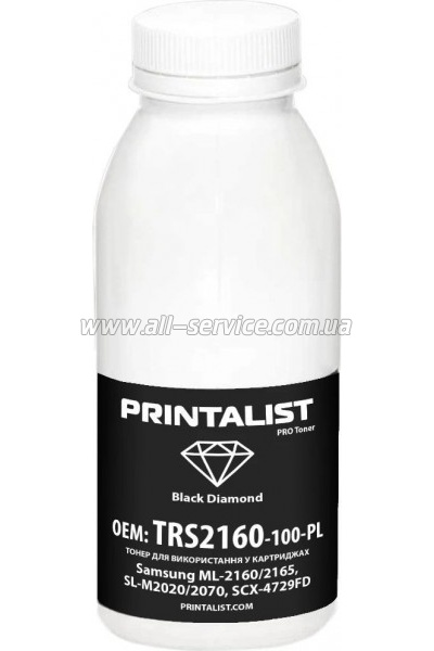 Тонер PRINTALIST Samsung ML-2160/ 2165/ SL-M2020/ 2070/ SCX-4729FD бутль 100г (TRS2160-100-PL)