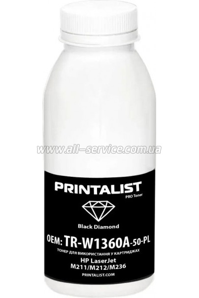 Тонер PRINTALIST HP LJ M211/ M212/ M236 бутль 50г (TR-W1360A-50-PL)