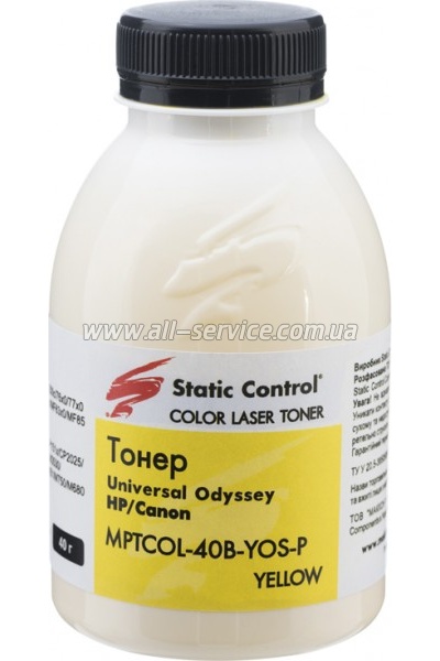 Тонер SCC Universal HP Color LaserJet / Canon бутль 40г Yellow (MPTCOL-40B-YOS-P)