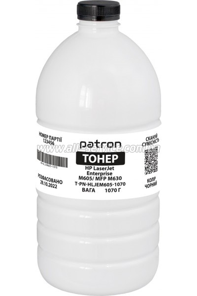 Тонер Patron HP LJ Enterprise M605/ MFP M630 бутль 1070г Black (PN-HLJEM605-1070)