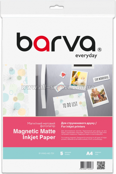 Фотобумага Barva Magnetic Everyday Matte 650г/м A4 5л (IP-MAG-MAT-T01/ IP-MAG-AE-T01)