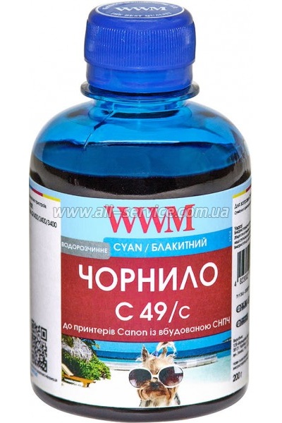 Чернила WWM GI-490C для Canon Pixma G1400/ 2400/ 3400 200г Cyan Водорастворимые (C49/C)