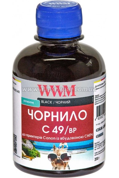 Чернила WWM GI-490BK для Canon Pixma G1400/ 2400/ 3400 200г Black Пигментные (C49/BP)