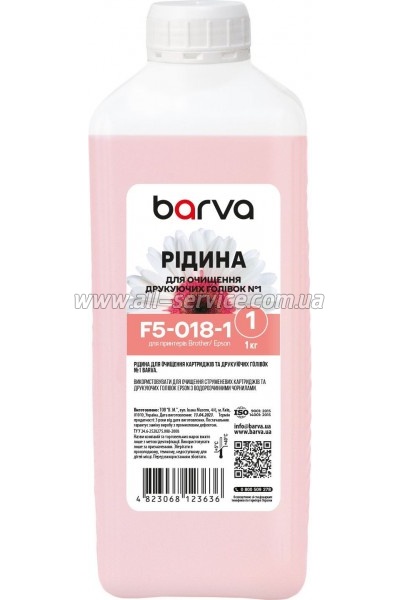 Очищающая жидкость Barva Brother/ Epson №1 с водорастворимыми чернилами 1л (F5-018-1)
