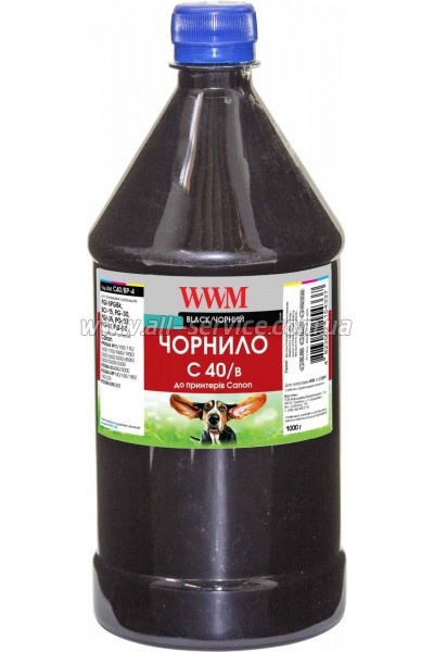 Чернила WWM для Canon PG-40Bk /PG-50Bk /PGI-5Bk 1000г Black Водорастворимые (C40/B-4)