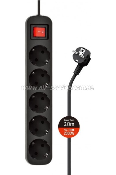 Сетевой фильтр ColorWay CW-PSEA55BK, 5 розеток/ 5M black (CW-PSEA55BK)