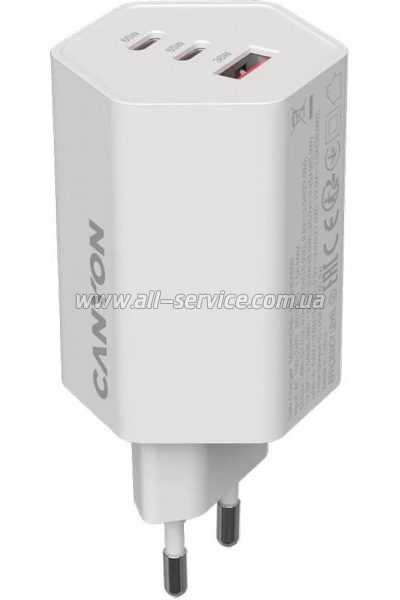 Зарядний пристрій Canyon HEXAGON 65 GaN 65W 2xPD 1xQC EU White (CND-CHAHEX65W)
