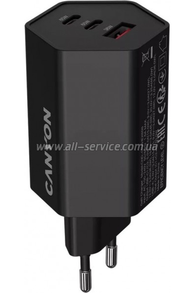 Зарядний пристрій Canyon HEXAGON 65 GaN 65W 2xPD 1xQC EU Black (CND-CHAHEX65B)