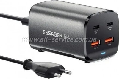 Зарядний пристрій Essager 2xUSB-C + 2xUSB 67W GaN (ECT2AC-JYB0G-Z)