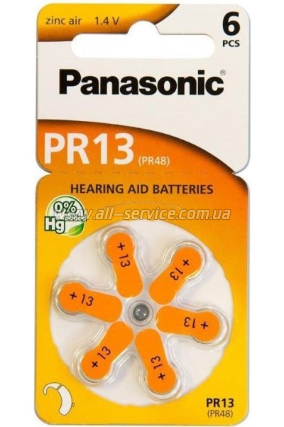 Батарейка для слухового аппарата Panasonic ZA-13 / 6BL Zinc Air (PR-13/6LB)