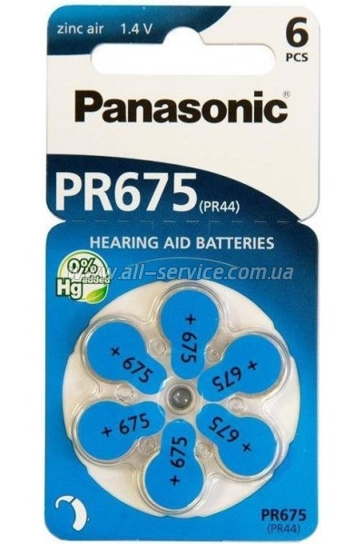 Батарейка для слухового аппарата Panasonic PR44 / PR675 6шт. (PR-675H/6LB)