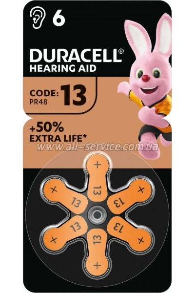 Батарейка для слухового аппарата Duracell Hearing Aid 13 6шт. (5004322)