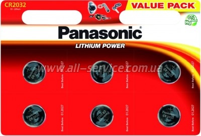 Батарейка Panasonic CR 2032 Lithium * 6 (CR-2032EL/6B)