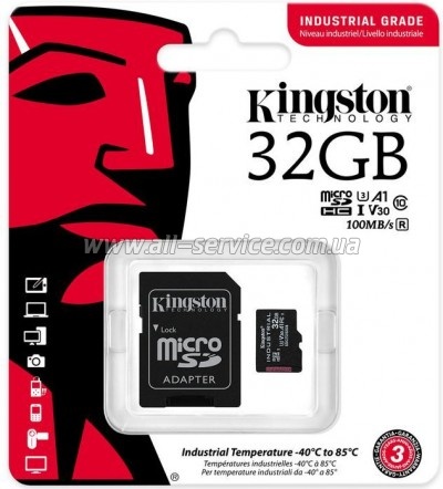 Карта памяти Industrial microSD UHS-I U3 SDCIT2/32GB компании Kingston предназначена для работы под большими нагрузками и построена на базе долговечной и быстрой флеш-памяти, работающей в режиме pSLC с ресурсом циклов запись-стирание, оцененным в 30 000, что позволяет достичь скорости обмена до 100 МБ/с и ресурса записи 960 TBW.