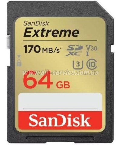 Карта памяти SanDisk 64GB SD class 10 UHS-I U3 V30 Extreme (SDSDXV2-064G-GNCIN)