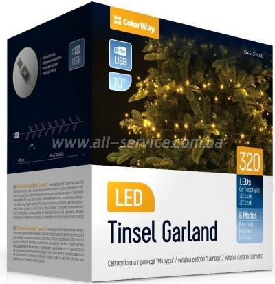 Гирлянда ColorWay Мишура LED 320 10м теплый цвет USB (CW-G-320L10U)