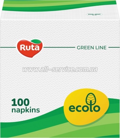 Салфетки столовые Ruta Ecolo Белые 1 слой 24х24 см 100 шт. (4820202890263)
