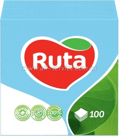 Салфетки столовые Ruta 24х24 см 1 слой Голубые 100 шт. (4820023740617)
