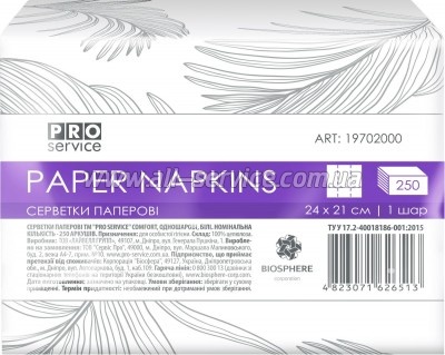 Салфетки столовые PRO service Comfort для диспенсеров однослойные 250 шт. (4823071626513)