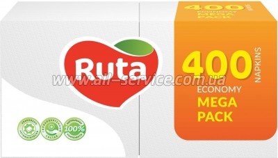 Салфетки столовые Ruta Mega Pack 1 слой 24х24 см Белые 400 шт. (4820023744622)
