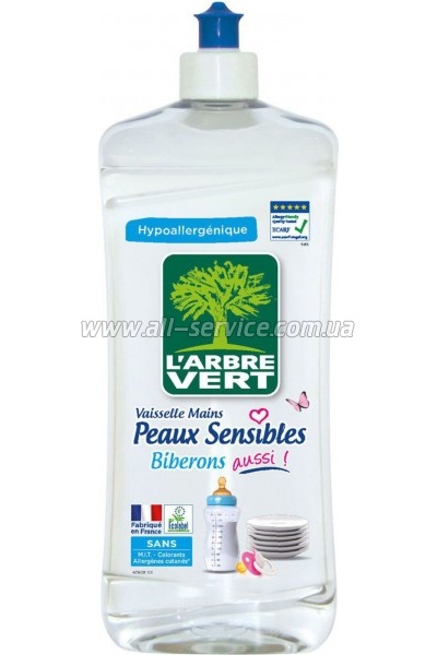 Средство для ручного мытья посуды L'Arbre Vert Чувствительная кожа 750 мл (3450601023910/ 3450601047190)