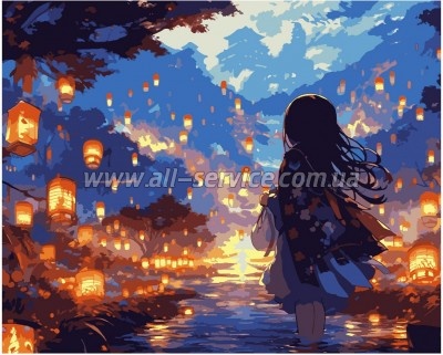 Картина по номерам Santi Дівчина на святі ліхтарів, 40*50см, LED підсвітка (955109)