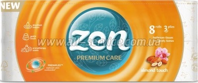 Туалетная бумага Zen Premium Care Almond Touch 8 рулонов (5944582100053)