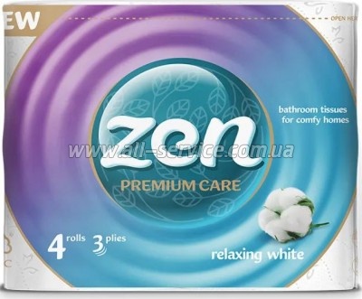 Туалетная бумага Zen Premium Care Relaxing White 4 рулона (5944582100176)