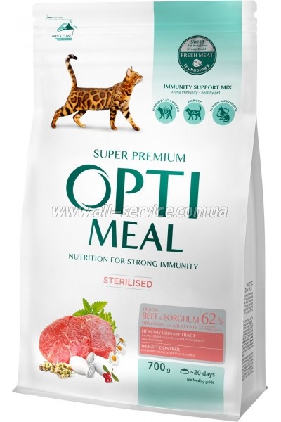 Сухой корм для кошек Optimeal для стерилизованных/кастрированных с высоким содержанием говядины и сорго 700 г (4820215369640)
