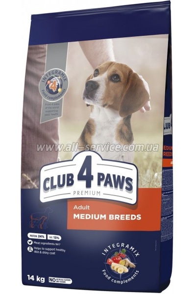 Сухой корм для собак Club 4 Paws Премиум. Для средних пород 14 кг(П) (4820215366328)