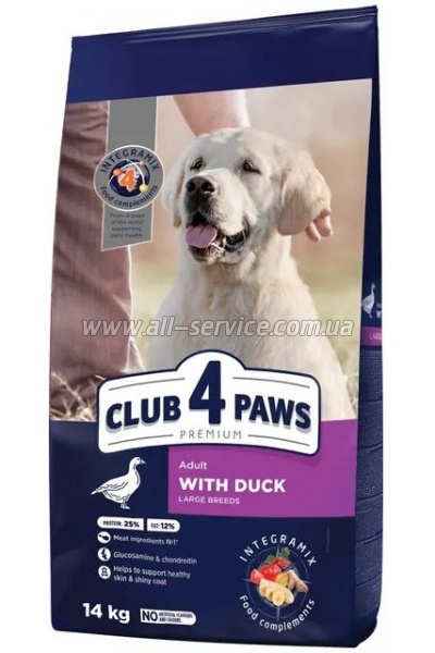 Сухой корм для собак Club 4 Paws Премиум Для больших пород с уткой 14кг (4820269143050)