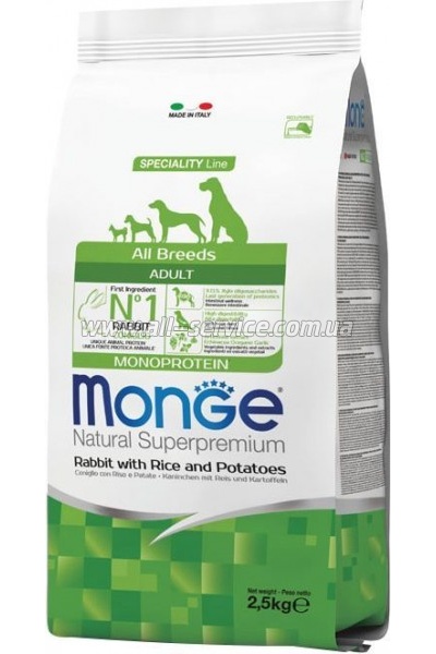 Сухой корм для собак Monge Dog All breeds Adult со вкусом кролика и риса 2.5 кг (8009470011143)