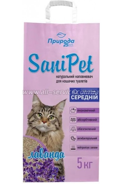 Наполнитель для туалета Природа Sani Pet бентонитовый средний с лавандой 5 кг NEW (4823082404346)