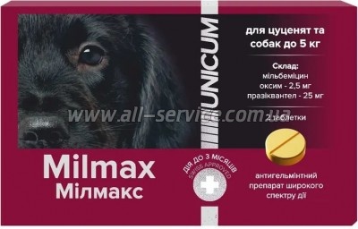 Таблетки Unicum Milmax антигельминтный для щенков и собак до 5 кг (4820150209797)