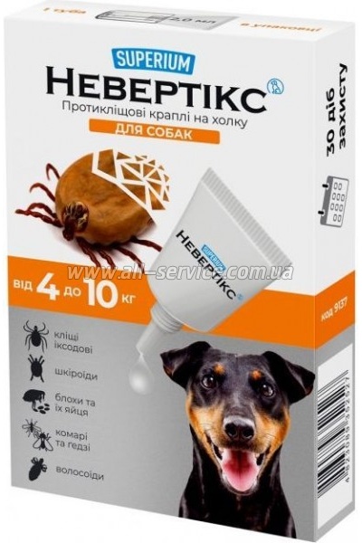 Капли Superium Nevertix Противоклещевые для собак от 4 до 10 кг (9137)